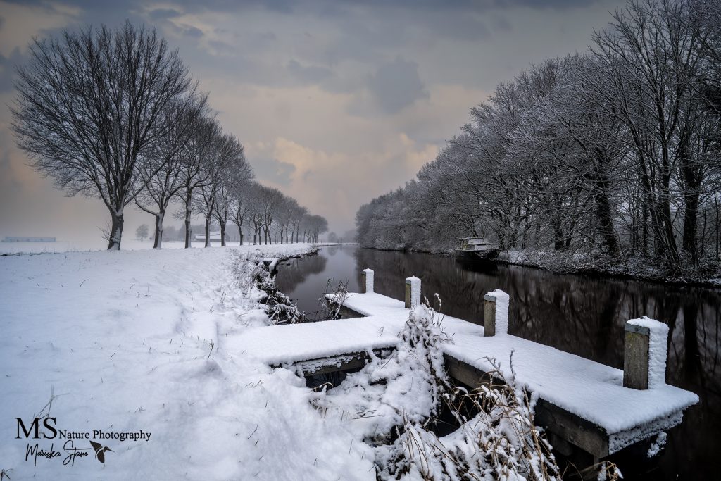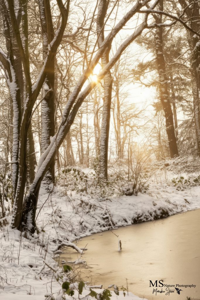 Tot slot nog een laatste beeld die ik hier wil delen van de witte mooie wereld in de vroegte. Deze foto is gemaakt in Woudbloem. De vers gevallen sneeuw maakt het zo mooi.